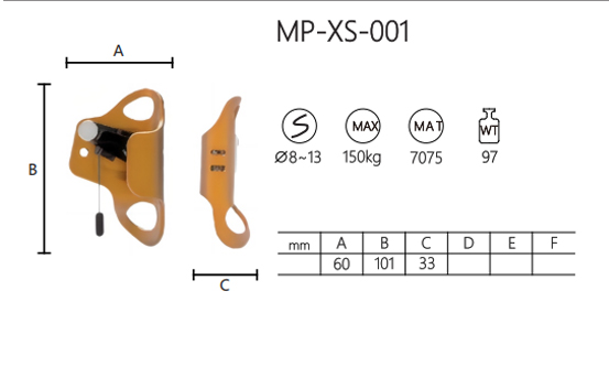 يعد MP-XS-001 Chest Ascender أداة وظيفية للغاية مصممة لمهام التسلق والوصول إلى الحبال. متوافق مع الحبال التي يتراوح قطرها من 8 ملم إلى 13 ملم، ويوفر أداءً موثوقًا به في البيئات الصعبة. تم تصنيع الصاعد من سبائك الألومنيوم القوية 7075، وهو خفيف الوزن ومتين، ويزن 97 جرامًا فقط. أبعادها هي 60 ملم طولاً (أ)، و101 ملم ارتفاعًا (ب)، و33 ملم عرضًا (ج)، مما يجعلها مدمجة وسهلة التعامل.