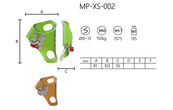 قادر على دعم ما يصل إلى 150 كجم، ويضمن الصاعد سلامة المستخدم طوال فترة التسلق. يسمح تصميمه بحركة سلسة للحبل مع الحفاظ على قبضة آمنة عند الضرورة. يعد هذا الجهاز حلاً متعدد الاستخدامات وفعالاً للحبال الصاعدة ويمكن دمجه بسهولة في أنظمة التسلق المختلفة.